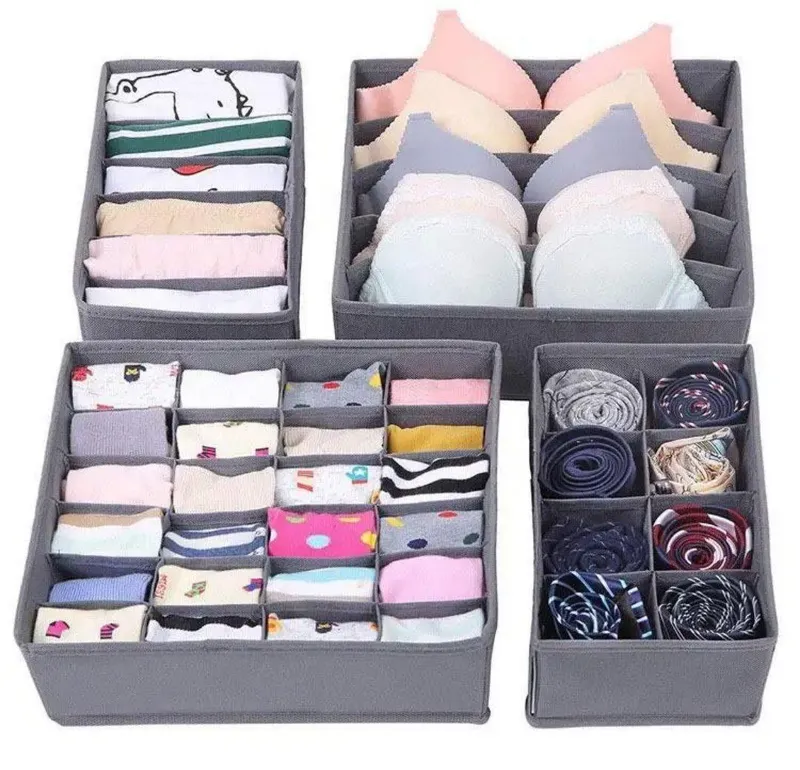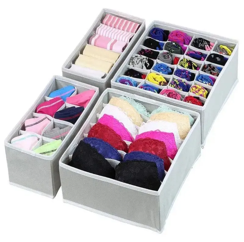 Panier à tiroirs en tissu pour sous-vêtements, boîte à tiroirs pour chaussettes pour culottes, soutiens-gorge, cravates, vêtements, organisateur permettant de gagner de l'espace domestique 4 pièces/ensemble