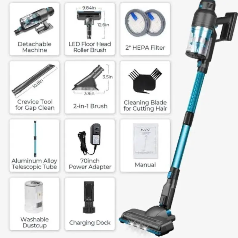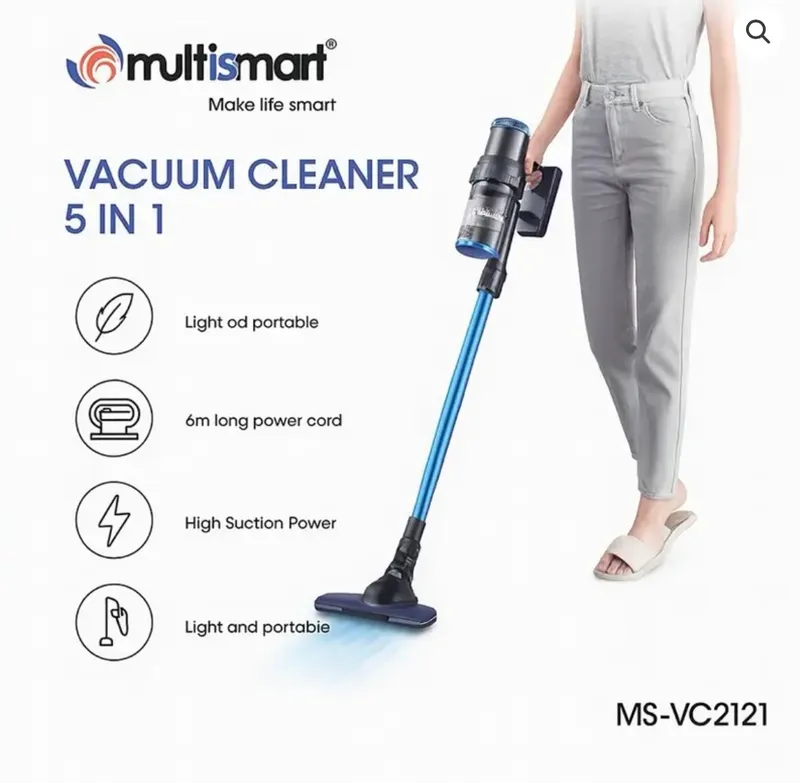 Puissance d’aspiration élevée (High Suction Power) 500W Conçu pour un nettoyage efficace sur sols durs, tapis et meubles 🔇 Fonctionnement silencieux Moteur optimisé pour réduire le bruit Idéal pour un usage quotidien confortable 🔌 Câble d’alimentation 5 mètres 5m long power cord Permet une grande mobilité dans la maison 🪶 Léger et portable Conception light & portable Facile à transporter et à manipuler 🔁 5 en 1 Peut être utilisé comme : Aspirateur balai Aspirateur à main Nettoyage sols Nettoyage meubles / canapés Nettoyage des coins et endroits difficiles ⚡ Poignée ergonomique Poignée de commande confortable pour une meilleure prise en main