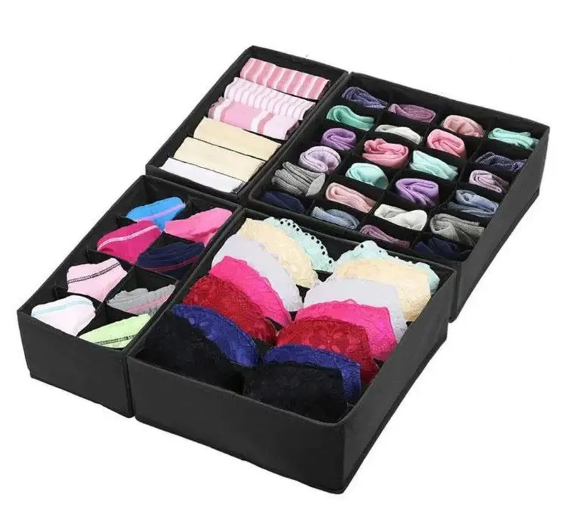 Panier à tiroirs en tissu pour sous-vêtements, boîte à tiroirs pour chaussettes pour culottes, soutiens-gorge, cravates, vêtements, organisateur permettant de gagner de l'espace domestique 4 pièces/ensemble