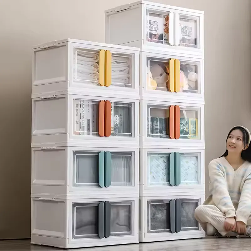 Boîte de rangement pliante transparente, grande capacité, adaptée aux vêtements ménagers, au Cisco, au salon, aux livres et aux jouets