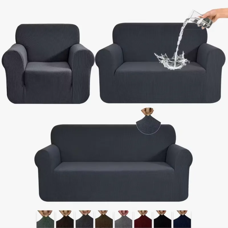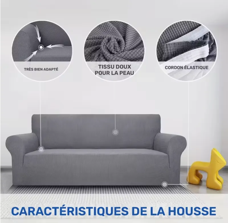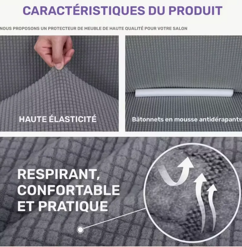 Housse de fauteuil en tissu élastiques disponibles en plusieurs couleurs, 5 places, 7 places , forme L l