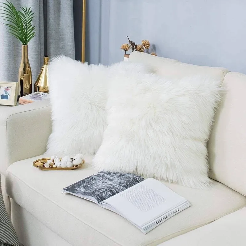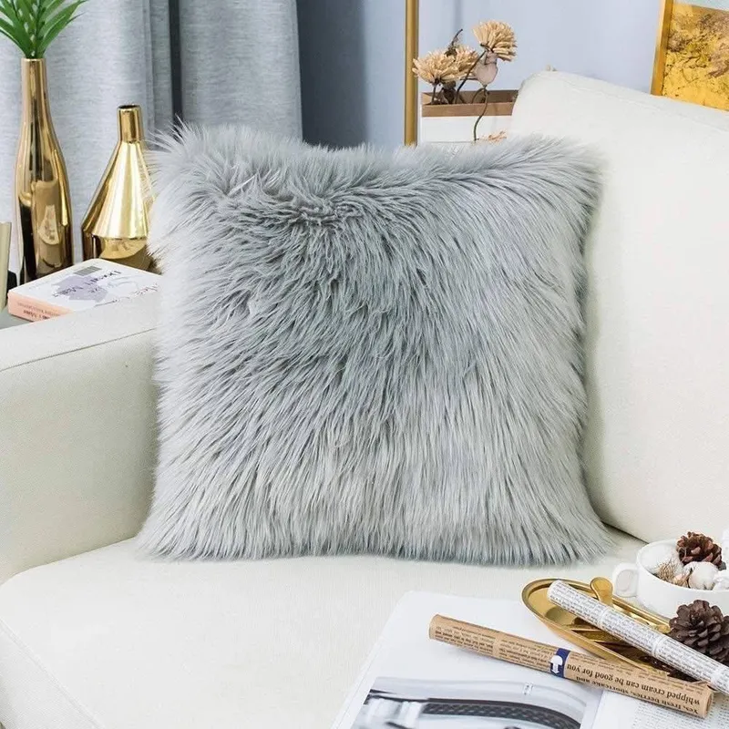 Housse de coussin décorative en peluche pour canapé, 43x43cm,pour lit, chaise, maison, fête, bureau, voiture