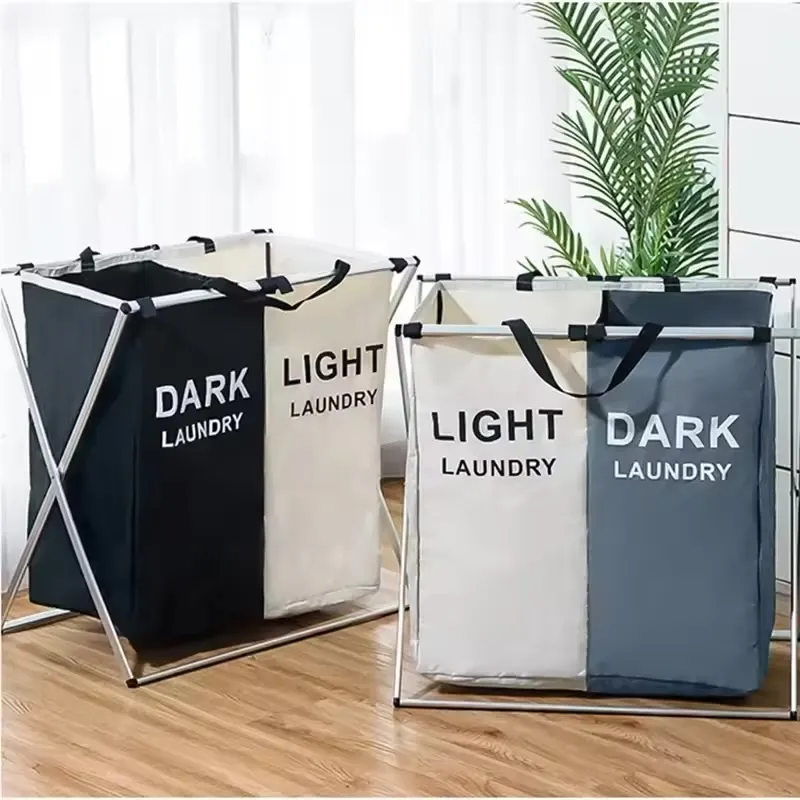 Panier de rangement pour vêtements sales à deux grilles, grand panier à linge pliable en aluminium et tissu , étanche, pour la maison