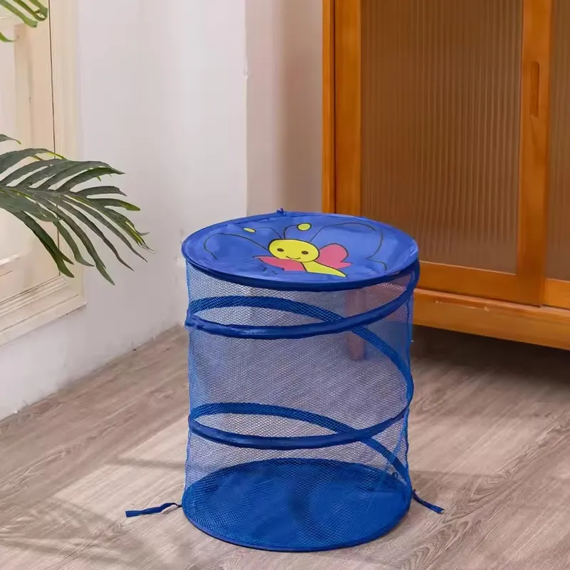 panier à linge rond, organisateur de vêtements de maison, salle de bain, panier à vêtements sales, maille de dessin animé, rangement de jouets pour enfants