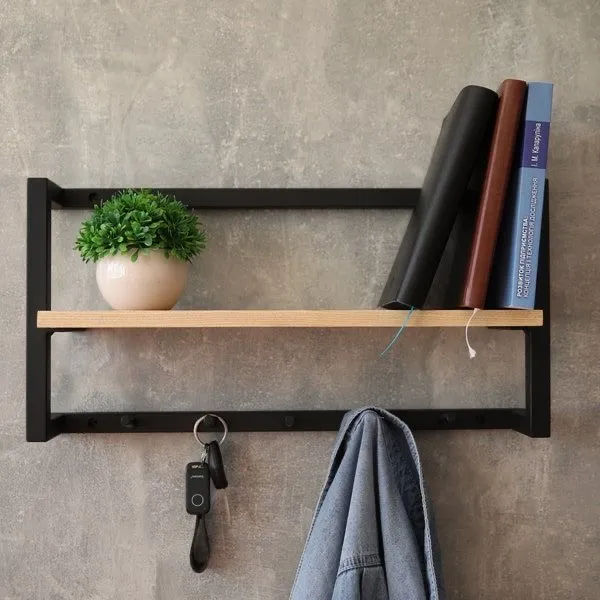 Porte manteau en fer avec étagère en bois très élégant décoratif