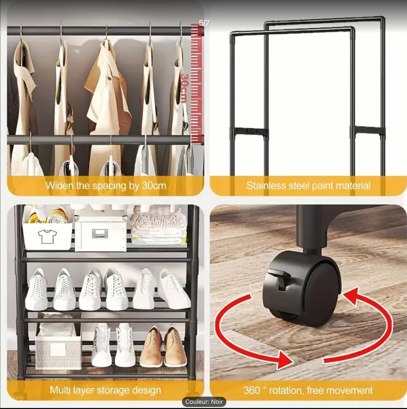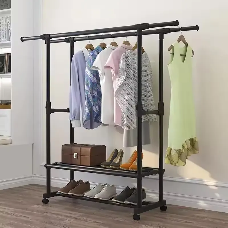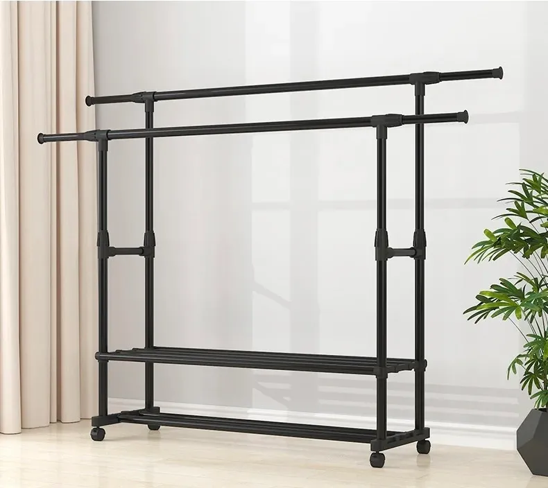 Porte-Vêtements Suspendu du Sol au Sol, Rétractable, Pliable, Mobile, Simple, Double Poteau, pour délégations