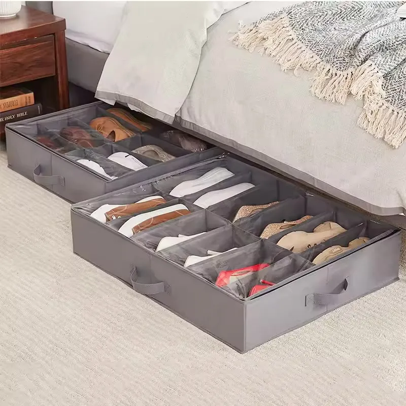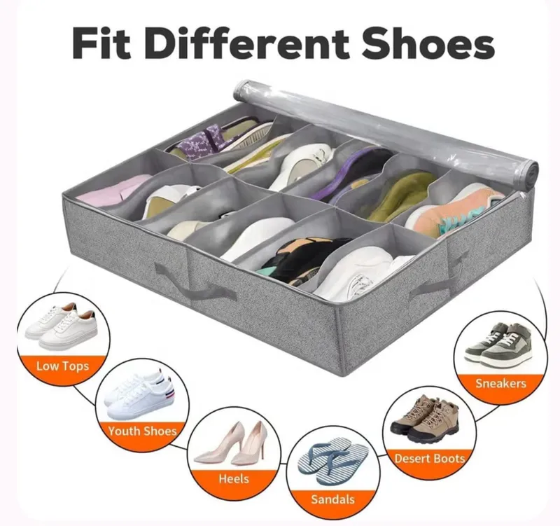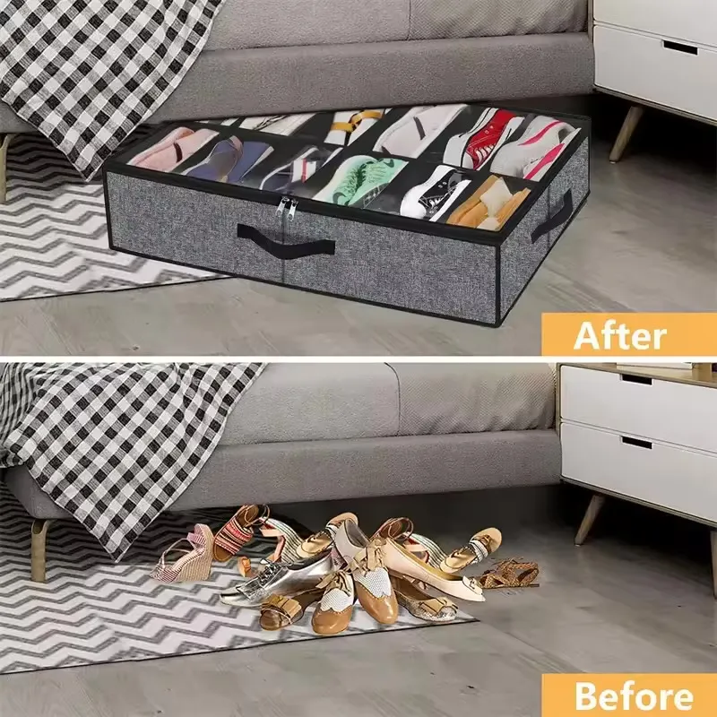 Organisateur de rangement de chaussures sous le lit, adapté aux baskets de 12 paires, rangement de baskets en tissu Ultra épais à Structure robuste, boîtes à chaussures pliables