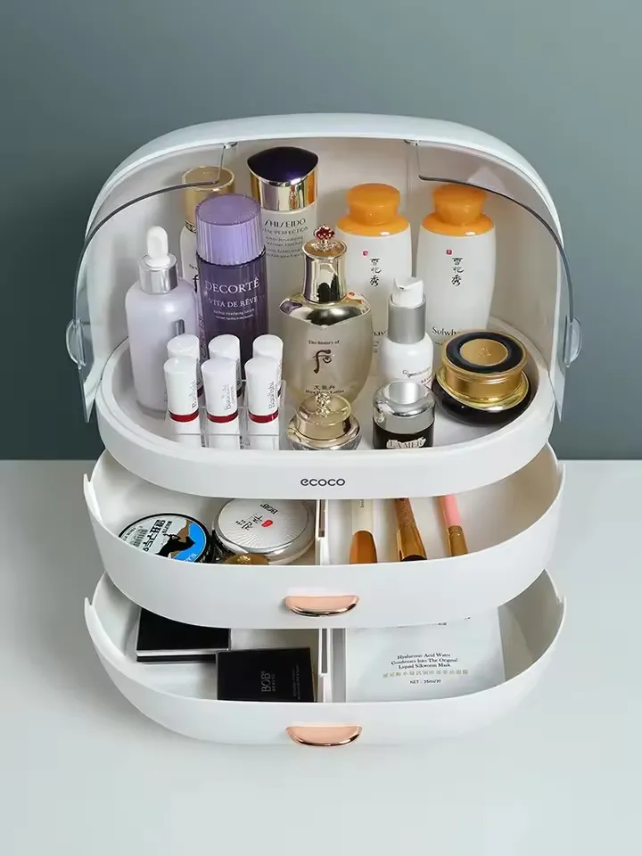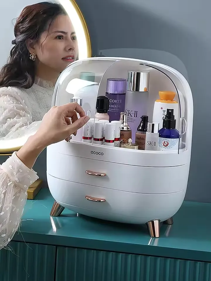 Boîte de rangement de cosmétiques, rouge à lèvres de bureau, brosse de soins de la peau, tiroir anti-poussière domestique, commode, support de rangement, boîte à bijoux