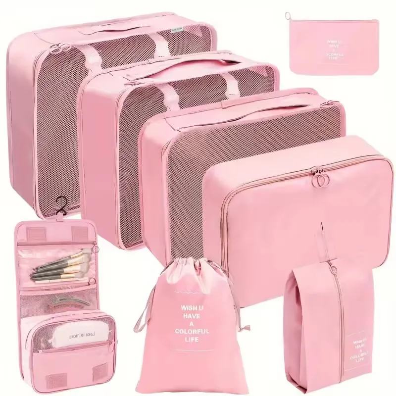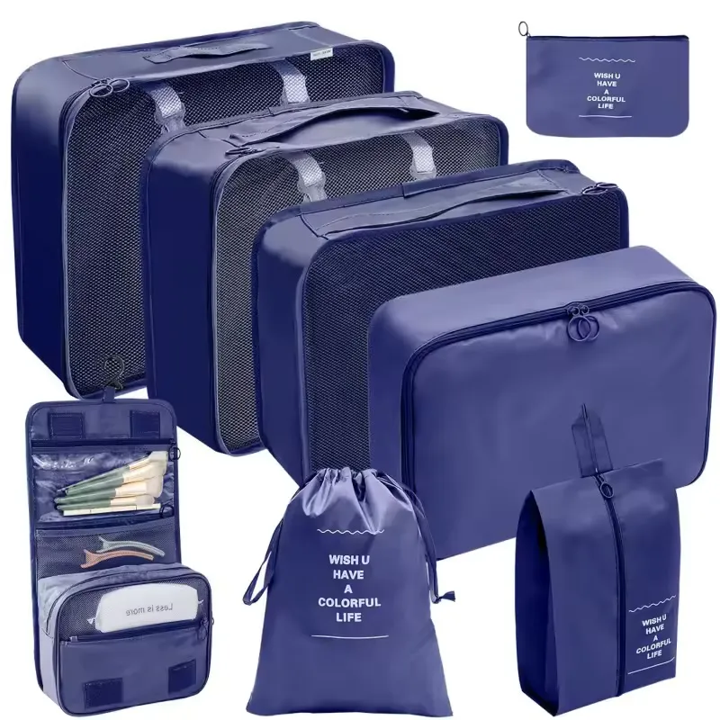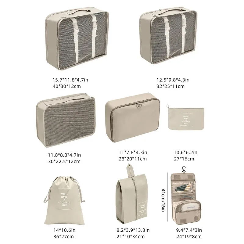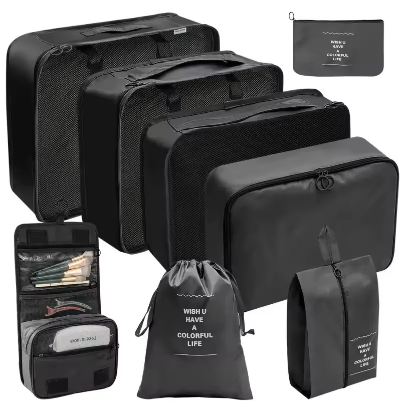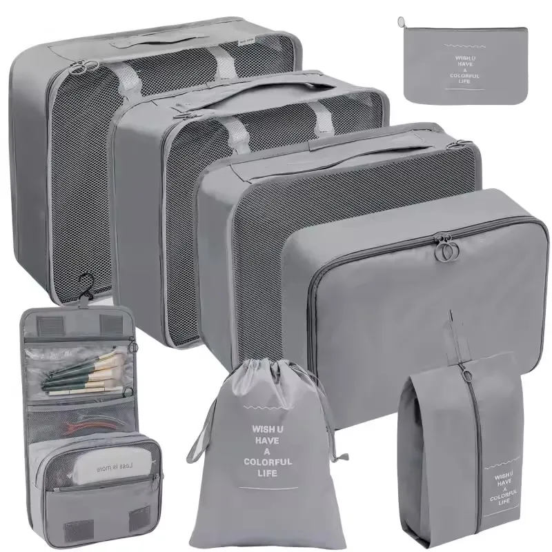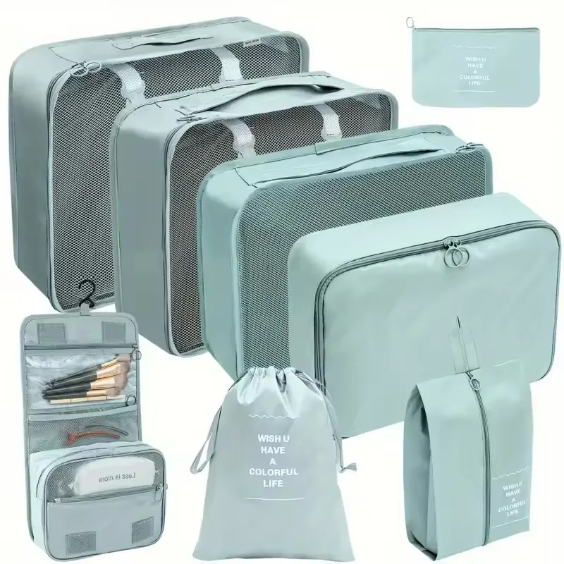 Ensemble de sacs de rangement de voyage, ensemble de 8 pièces, sac de rangement pour vêtements et cosmétiques de toilette, ensemble de sacs de tri portables de grande capacité de voyage
