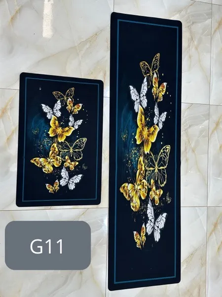 Tapis de cuisine 2 pièces anti dérapant absorbant Tapis de cuisine imprimé bohème, balcon, couloir, buanderie, salon, entrée, porte antidérapante, salle de bain, toilettes dimension : 150cmx43cm + 70cmx43cm