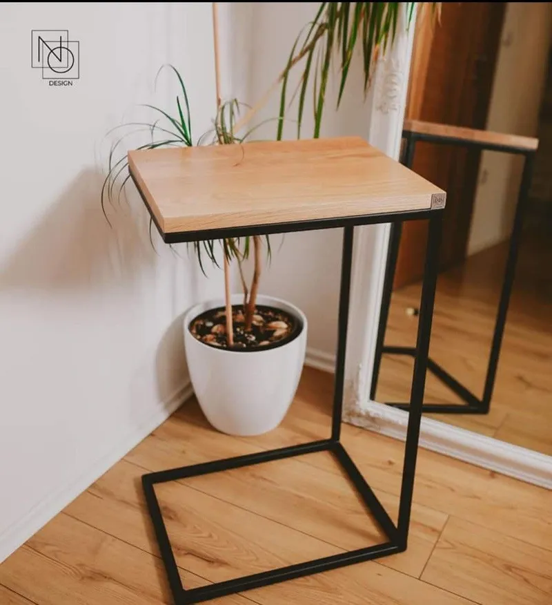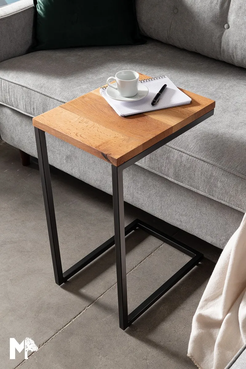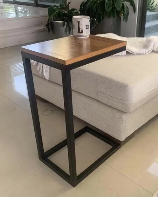 Table d'appoint de canapé de salon, Table d'appoint en forme de C pour toboggan de canapé sous #