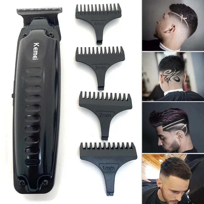 Kemei 1579 PRO-Tondeuse à cheveux sans fil, 0mm, pour coiffeur, tondeuse de finition, haute performance, profil bas+ tablier de rasage imperméable